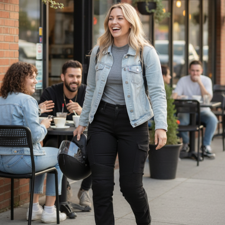 Ride with confidence, then walk into the café or office — all in the same pair of jeans.