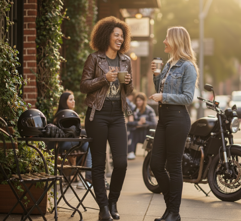 Finally, motorcycle jeans that combine everyday comfort with real protection. Reinforced with Kevlar and CE-rated armor, they look like your favorite pair — but are built to handle the slide.